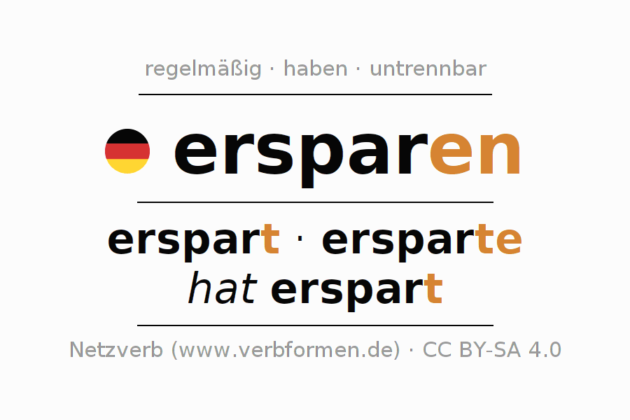 - Perfekt: ich habe erspart, du hast erspart, er hat erspart, wir haben erspart, ihr habt erspart, sie haben erspart