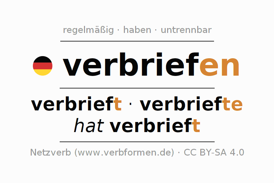 - Präsens: verbrief(e) (du), verbriefen wir, verbrieft (ihr), verbriefen Sie