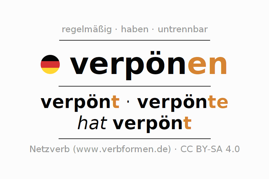 - Präsens: verpön(e) (du), verpönen wir, verpönt (ihr), verpönen Sie