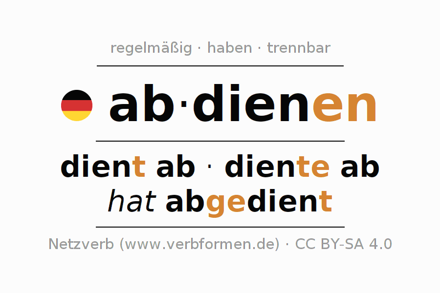 Die Verbtabellen fassen alle Verbformen des Verbs abdienen übersichtlich in einer Tabelle zusammen.