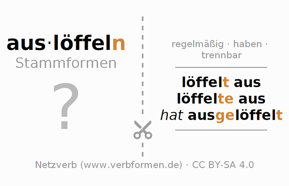Die Verbtabellen fassen alle Verbformen des Verbs auslöffeln übersichtlich in einer Tabelle zusammen.