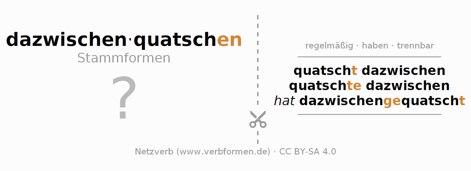 Arbeitsblätter für die Konjugation des Verbs dazwischenquatschen