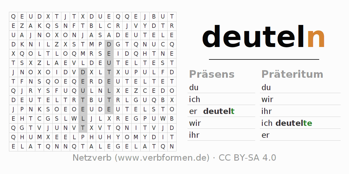 Suchsel, Suchworträtsel für alle Formen des Verbs deuteln