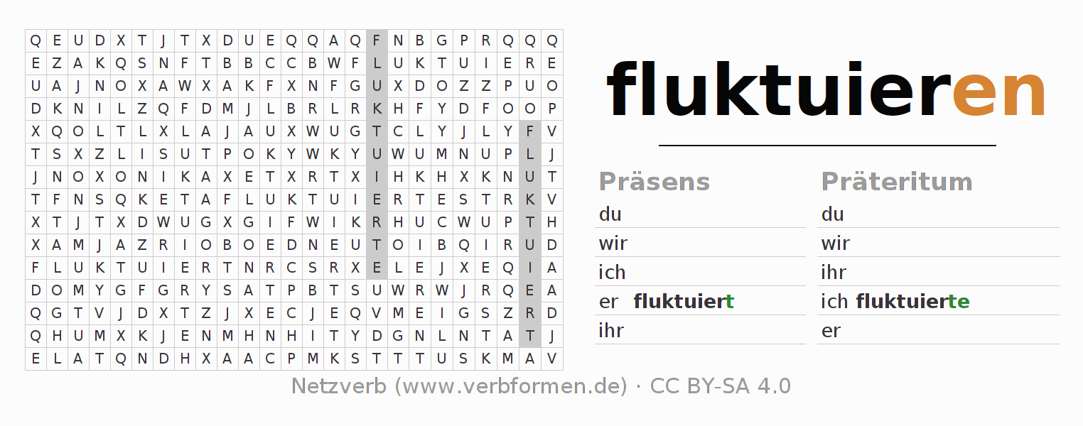Suchsel, Suchworträtsel für alle Formen des Verbs fluktuieren
