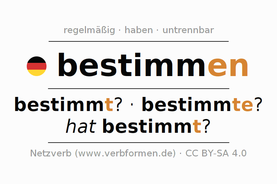 Die Verbtabellen fassen alle Verbformen des Verbs bestimmen übersichtlich in einer Tabelle zusammen.