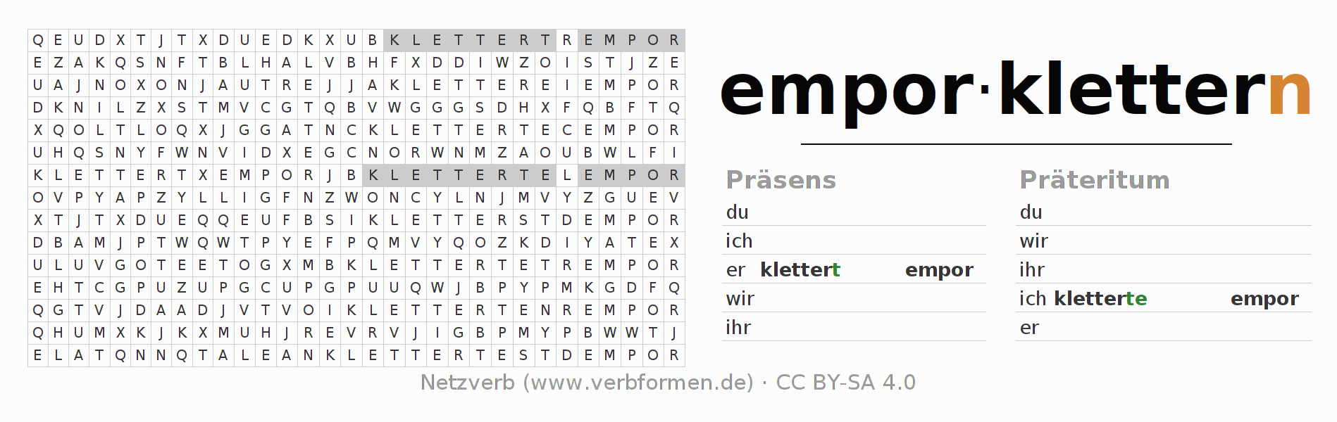 Suchsel, Suchworträtsel für alle Formen des Verbs emporklettern