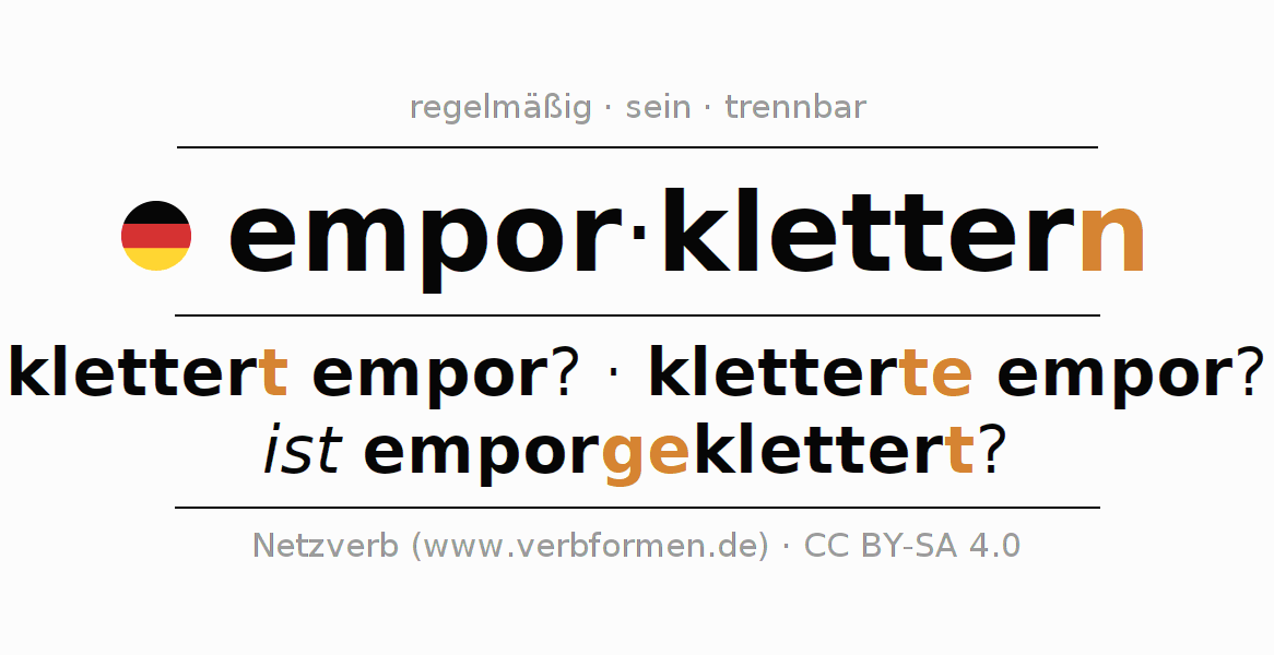Die Verbtabellen fassen alle Verbformen des Verbs emporklettern übersichtlich in einer Tabelle zusammen.