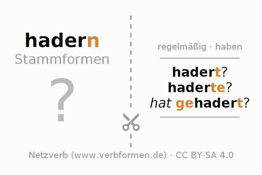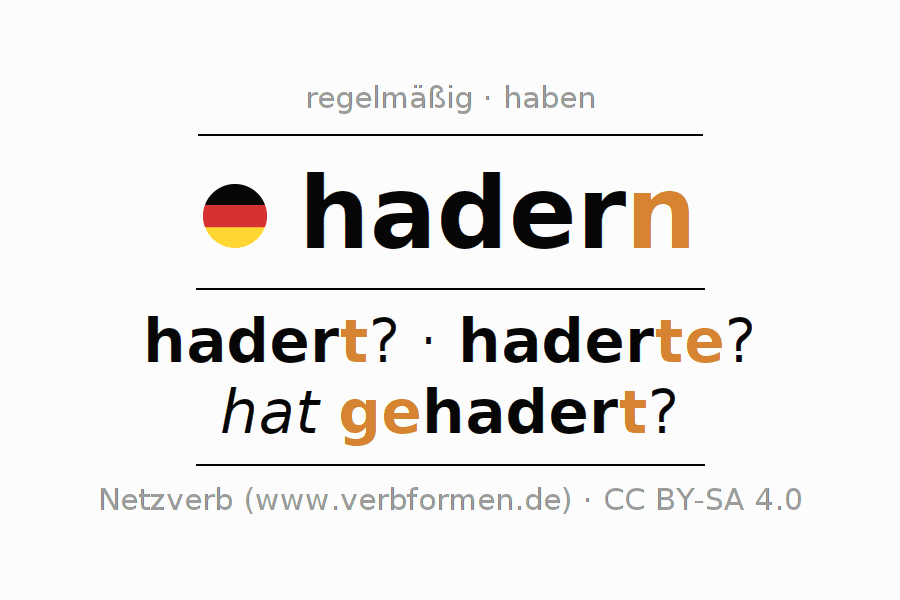 Die Verbtabellen fassen alle Verbformen des Verbs hadern übersichtlich in einer Tabelle zusammen.
