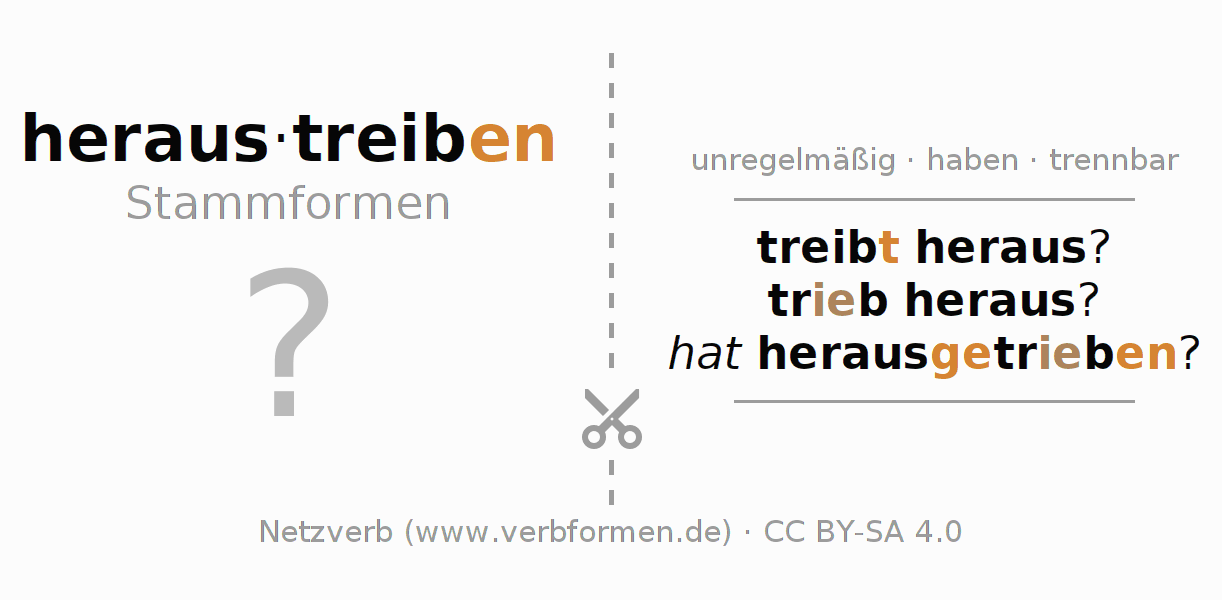 Die Verbtabellen fassen alle Verbformen des Verbs heraustreiben übersichtlich in einer Tabelle zusammen.