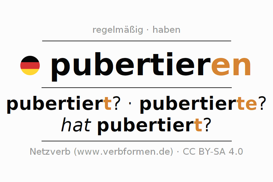 Konjugationstabellen für alle Verbformen des Verbs pubertieren