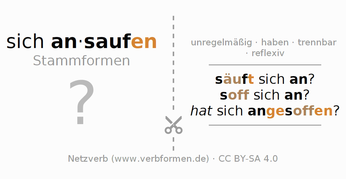 Die Verbtabellen fassen alle Verbformen des Verbs sich ansaufen übersichtlich in einer Tabelle zusammen.