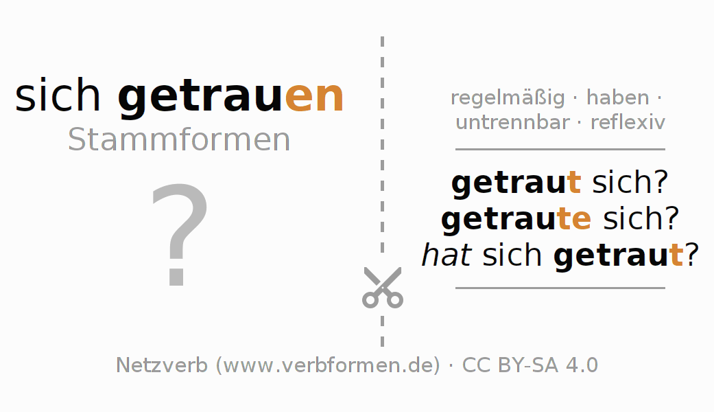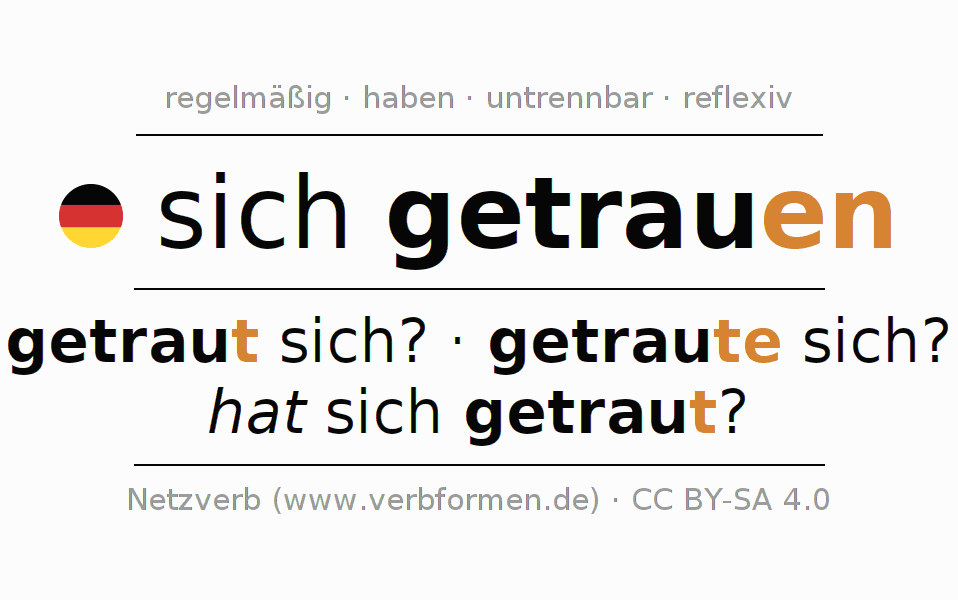 Die Verbtabellen fassen alle Verbformen des Verbs sich getrauen übersichtlich in einer Tabelle zusammen.