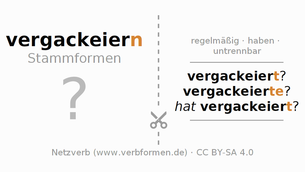 Die Verbtabellen fassen alle Verbformen des Verbs vergackeiern übersichtlich in einer Tabelle zusammen.
