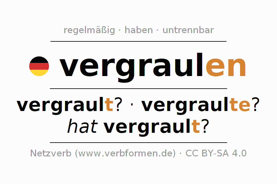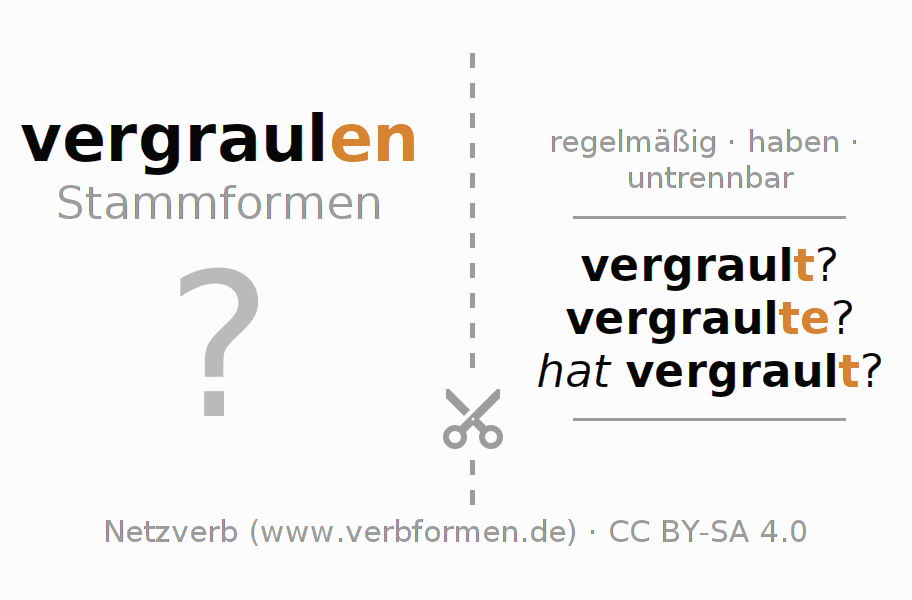 Arbeitsblätter dienen dem Üben der Konjugation des Verbs vergraulen im Unterricht und im Selbststudium. Die Materialien können im Rahmen der Lizenz CC BY-SA 4.0 als Open Educational Resources (OER) z. B. im Unterricht kostenlos genutzt werden. Dafür stehen viele verschiedene Typen von Arbeitsblättern für das Verb vergraulen zur Verfügung. Das sind Konjugationstabellen, Rätsel und Spiele. Das gesamten Unterrichtsmaterial ist als PDF-Download, als Bilder und als interaktive Browser-Version gratis verfügbar. Neben den Aufgaben geben auch unzählige Beispiele für vergraulen eine Hilfestellung zur Verwendung des Verbs.