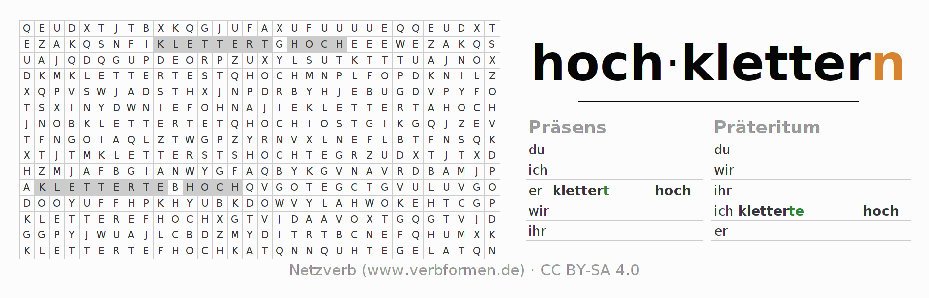 Suchsel, Suchworträtsel für alle Formen des Verbs hochklettern
