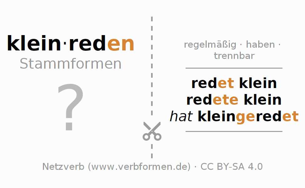 Die Verbtabellen fassen alle Verbformen des Verbs kleinreden übersichtlich in einer Tabelle zusammen.