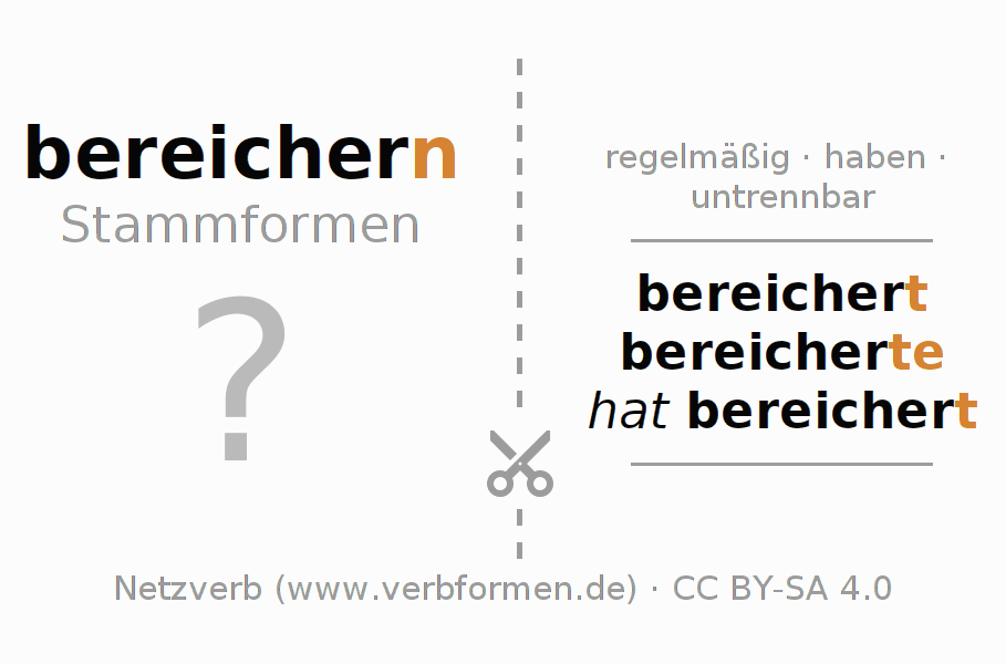 Mit den Lernkarten können die einzelnen Verbformen der deutschen Konjugation erlernt und trainiert werden. Dazu werden die Vorgaben auf den Lernzetteln für das Verb bereichern der Reihe nach bearbeitet. Die geforderten Verbformen müssen dazu im Kopf gebildet werden. Anschließend gleicht man diese mit den Hinweisen auf den Karteikarten ab. Bei Übereinstimmung bestätigt man sein Lernergebnis. Bei Abweichung kann man die Hinweise nutzen, um sich die unbekannten Formen einzuprägen. Idealerweise druck man die PDF-Datei der Lernkarten aus und faltet sie wie angegeben. So kann man sie auf einen Stapel mit anderen Verben zum Lernen nutzen. Es gibt auch noch viele weitere Arbeitsblätter für das Verb bereichern. Alle Materialien können als Open Educational Resources (OER) im Rahmen der Lizenz CC BY-SA 4.0 kostenlos und frei genutzt werden.