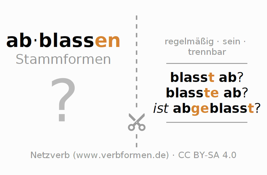 Lernkarten für die Konjugation des deutschen Verbs abblassen