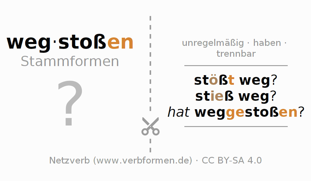 Lernkarten für die Konjugation des deutschen Verbs wegstoßen