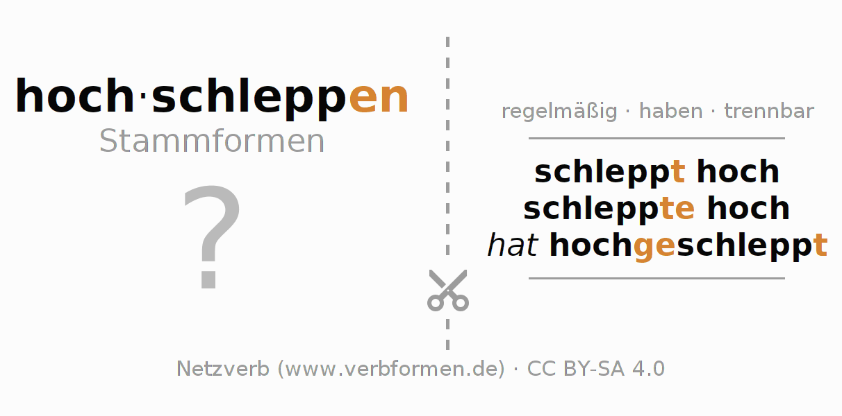 schleppt hoch schleppte hoch hat hochgeschleppt |