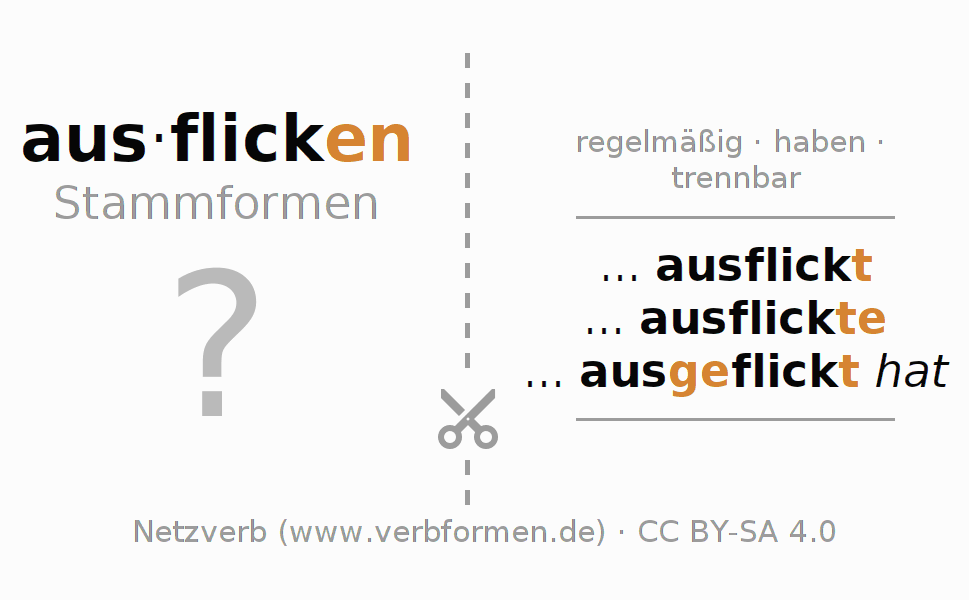 ... ausflickt ... ausflickte ... ausgeflickt hat |