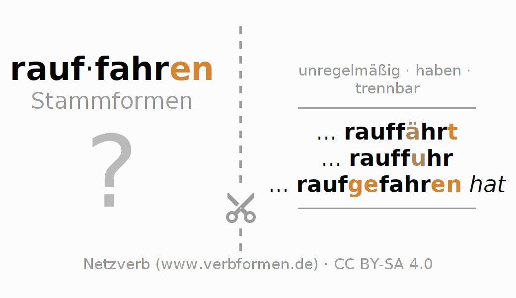 ... rauffährt ... rauffuhr ... raufgefahren hat |
