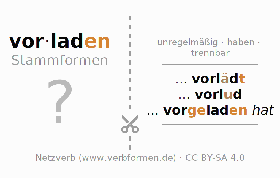 Mit den Lernkarten können die einzelnen Verbformen der deutschen Konjugation erlernt und trainiert werden. Dazu werden die Vorgaben auf den Lernzetteln für das Verb vorladen der Reihe nach bearbeitet. Die geforderten Verbformen müssen dazu im Kopf gebildet werden. Anschließend gleicht man diese mit den Hinweisen auf den Karteikarten ab. Bei Übereinstimmung bestätigt man sein Lernergebnis. Bei Abweichung kann man die Hinweise nutzen, um sich die unbekannten Formen einzuprägen. Idealerweise druck man die PDF-Datei der Lernkarten aus und faltet sie wie angegeben. So kann man sie auf einen Stapel mit anderen Verben zum Lernen nutzen. Es gibt auch noch viele weitere Arbeitsblätter für das Verb vorladen. Alle Materialien können als Open Educational Resources (OER) im Rahmen der Lizenz CC BY-SA 4.0 kostenlos und frei genutzt werden.