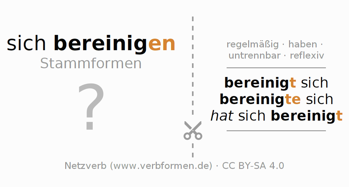 Lernkarten für die Konjugation des deutschen Verbs sich bereinigen