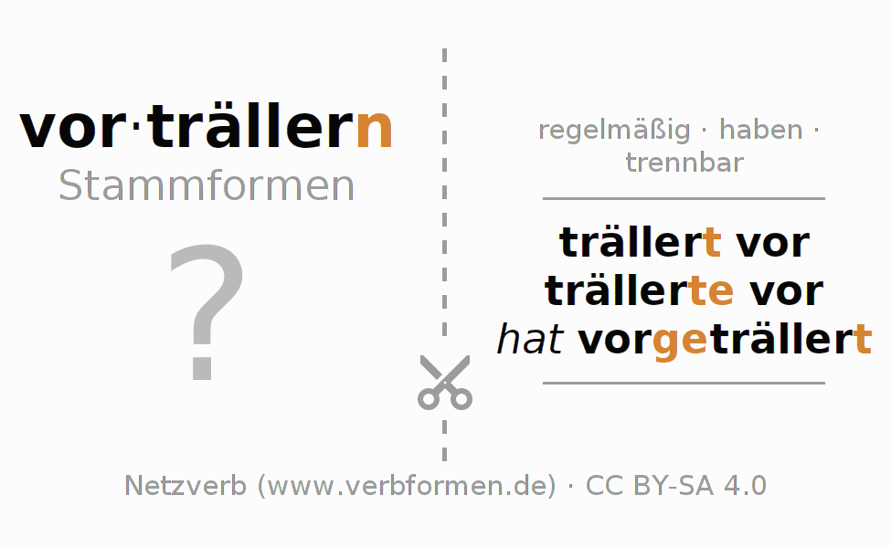 Lernkarten für die Konjugation des deutschen Verbs vorträllern