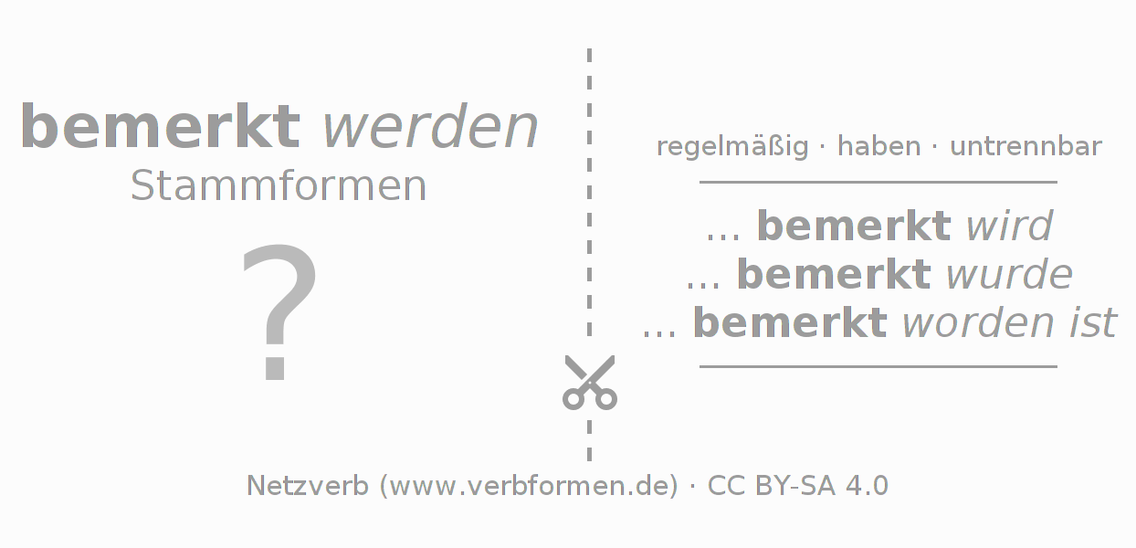 ... bemerkt wird ... bemerkt wurde ... bemerkt worden ist |