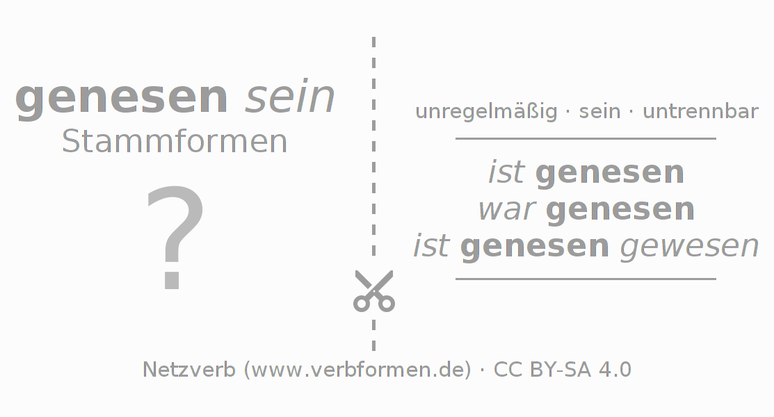 Lernkarten für die Konjugation des deutschen Verbs genesen