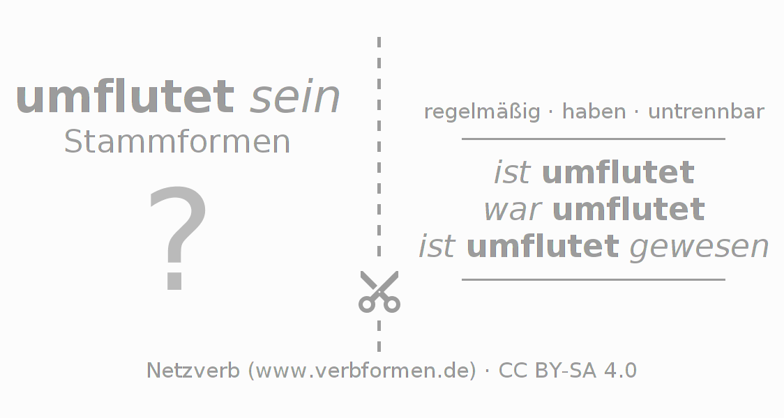 Lernkarten für die Konjugation des deutschen Verbs umfluten