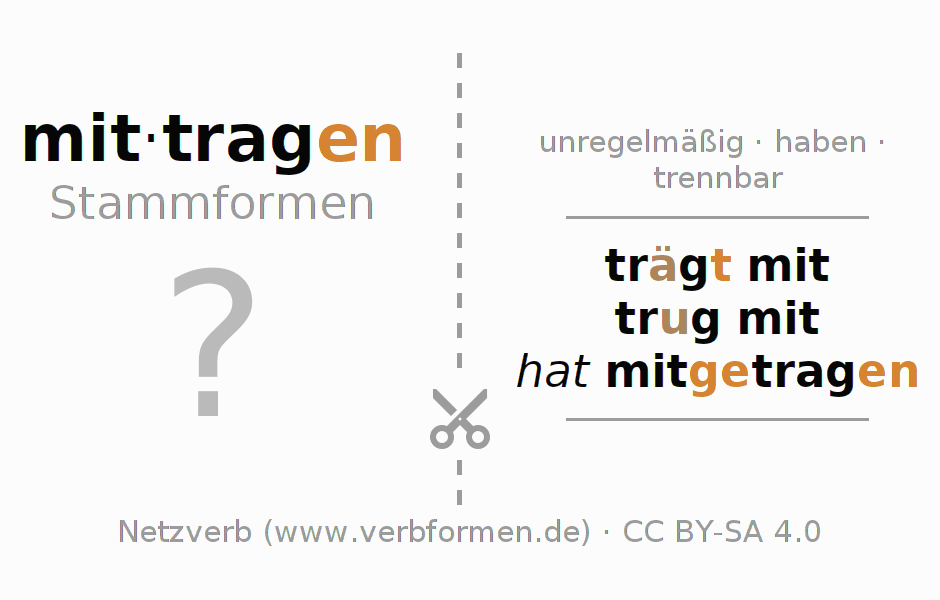 Die Verbtabellen fassen alle Verbformen des Verbs mittragen übersichtlich in einer Tabelle zusammen.