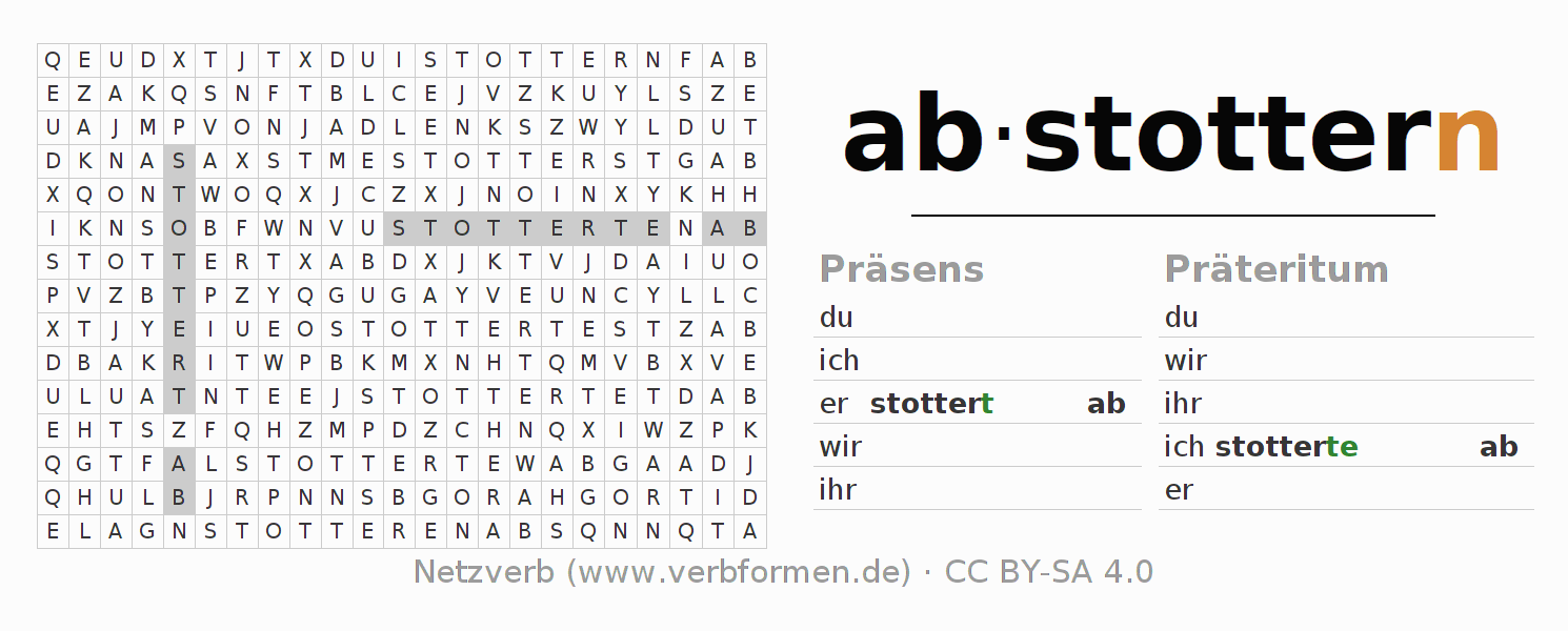 Suchsel, Suchworträtsel für alle Formen des Verbs abstottern