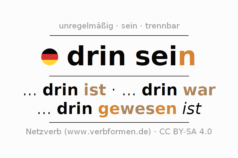 Die Verbtabellen fassen alle Verbformen des Verbs drinsein übersichtlich in einer Tabelle zusammen.