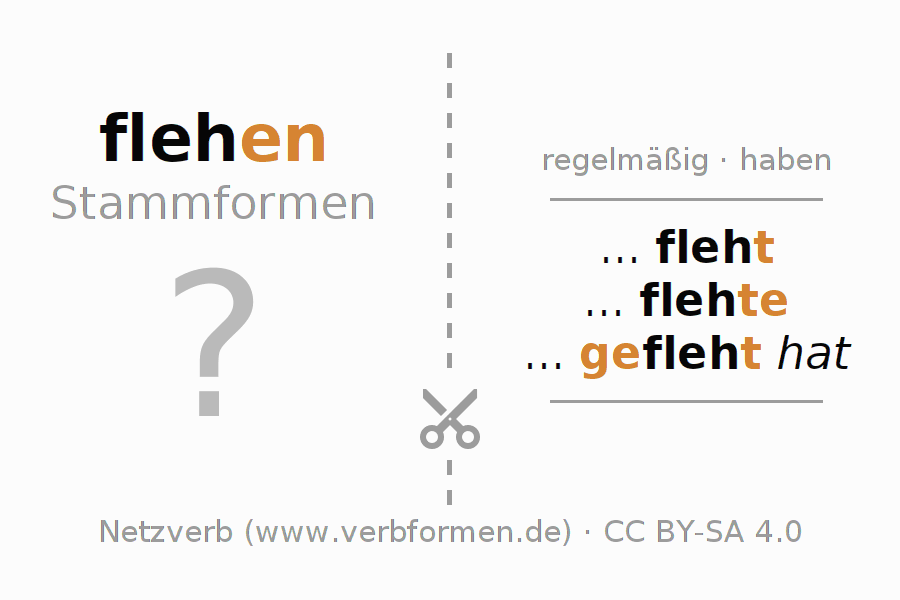 Arbeitsblätter dienen dem Üben der Konjugation des Verbs flehen im Unterricht und im Selbststudium. Die Materialien können im Rahmen der Lizenz CC BY-SA 4.0 als Open Educational Resources (OER) z. B. im Unterricht kostenlos genutzt werden. Dafür stehen viele verschiedene Typen von Arbeitsblättern für das Verb flehen zur Verfügung. Das sind Konjugationstabellen, Rätsel und Spiele. Das gesamten Unterrichtsmaterial ist als PDF-Download, als Bilder und als interaktive Browser-Version gratis verfügbar. Neben den Aufgaben geben auch unzählige Beispiele für flehen eine Hilfestellung zur Verwendung des Verbs.