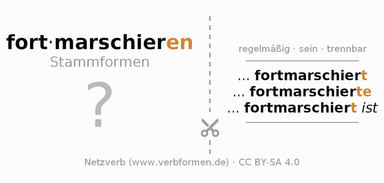 Die Verbtabellen fassen alle Verbformen des Verbs fortmarschieren übersichtlich in einer Tabelle zusammen.