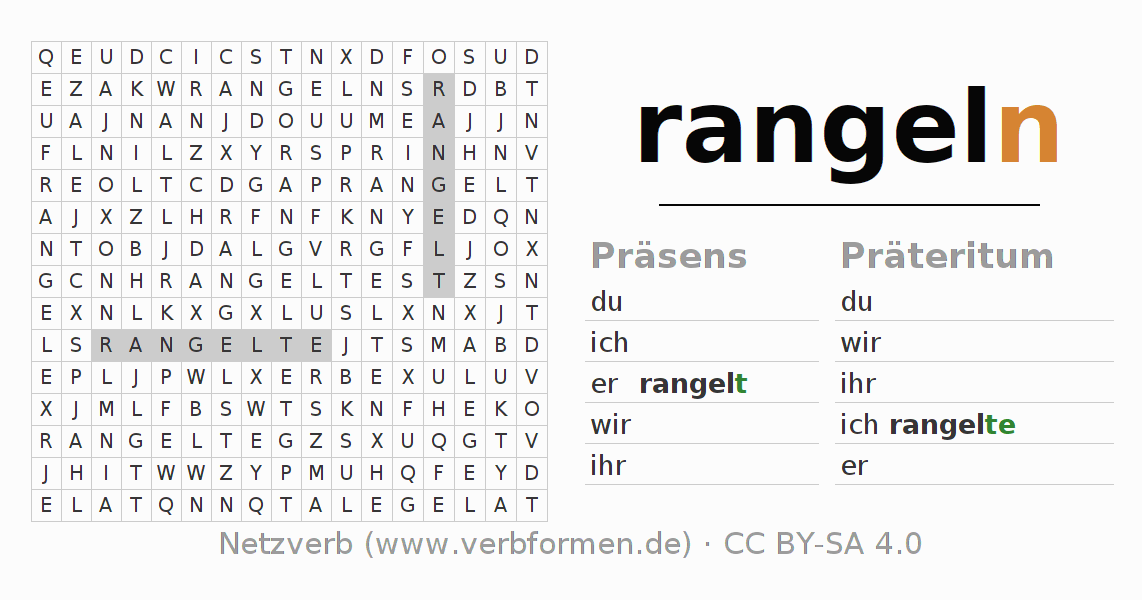 Suchsel, Suchworträtsel für alle Formen des Verbs rangeln