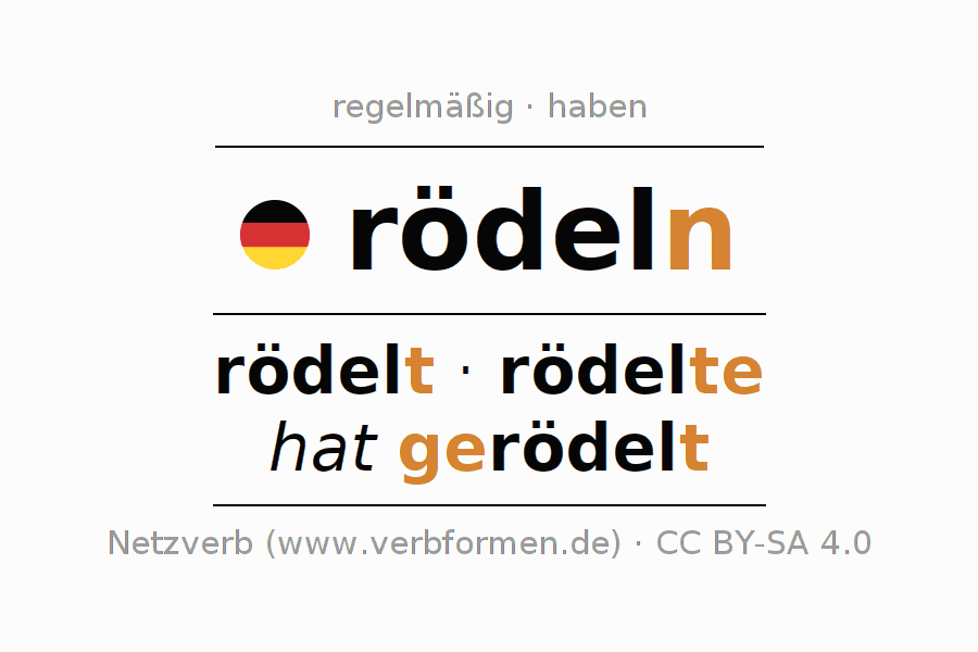 Konjugationstabellen für alle Verbformen des Verbs rödeln