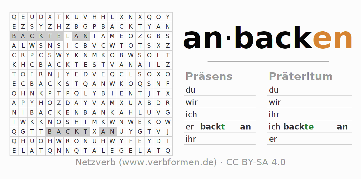 Lösung des Suchsels für die Verbkonjugation von anbacken