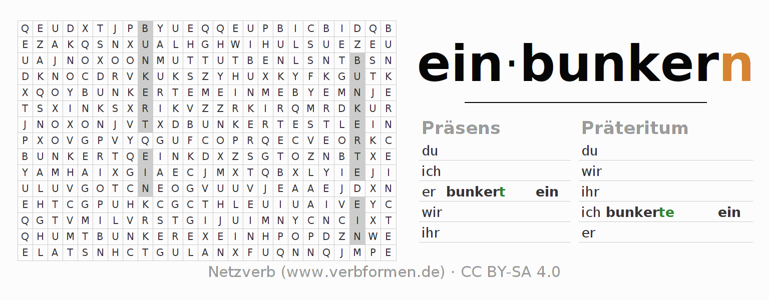 Lösung des Suchsels für die Verbkonjugation von einbunkern