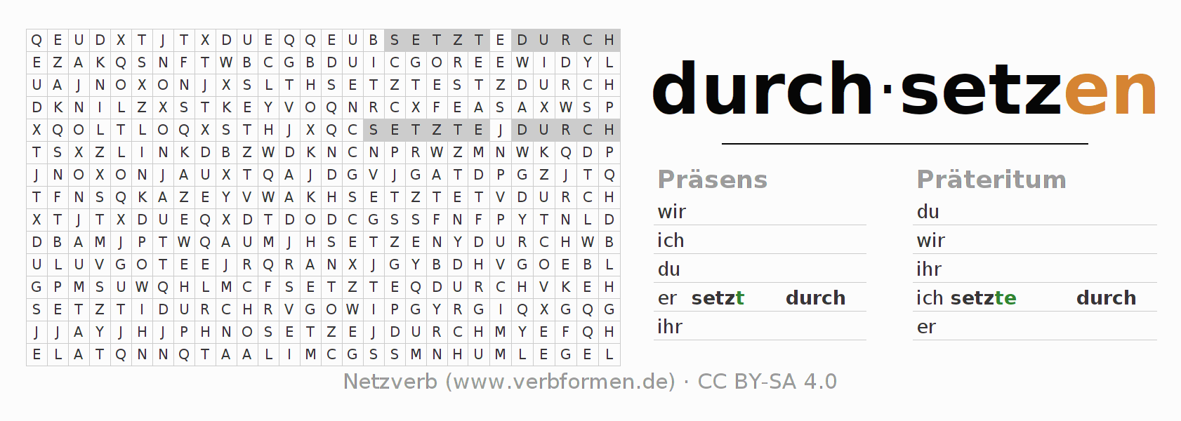 Lösung des Suchsels für die Verbkonjugation von durch-setzen