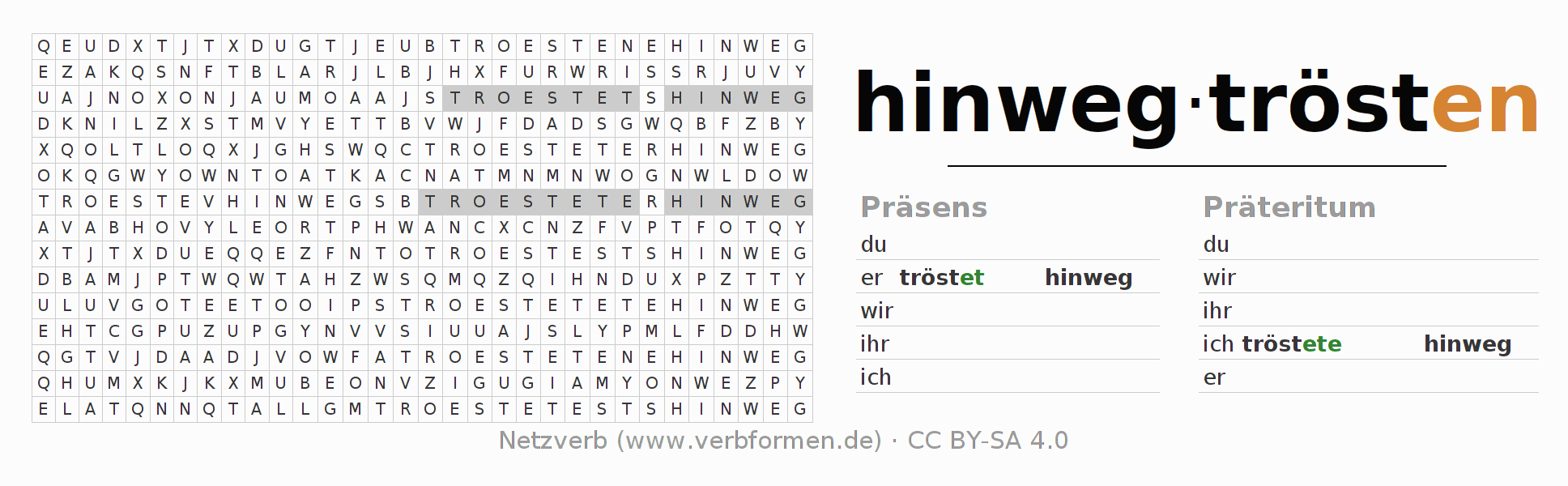 Lösung des Suchsels für die Verbkonjugation von hinwegtrösten