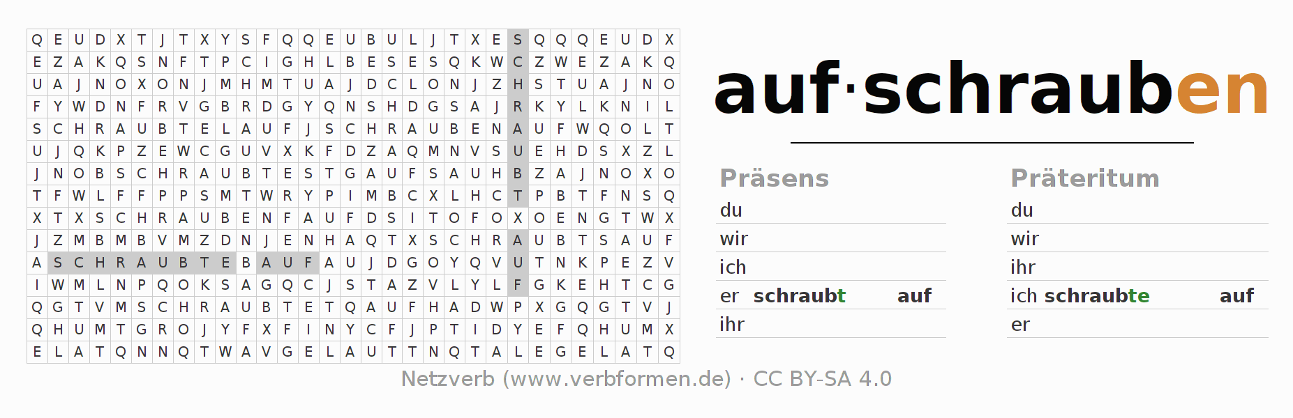 Lösung des Suchsels für die Verbkonjugation von aufschrauben