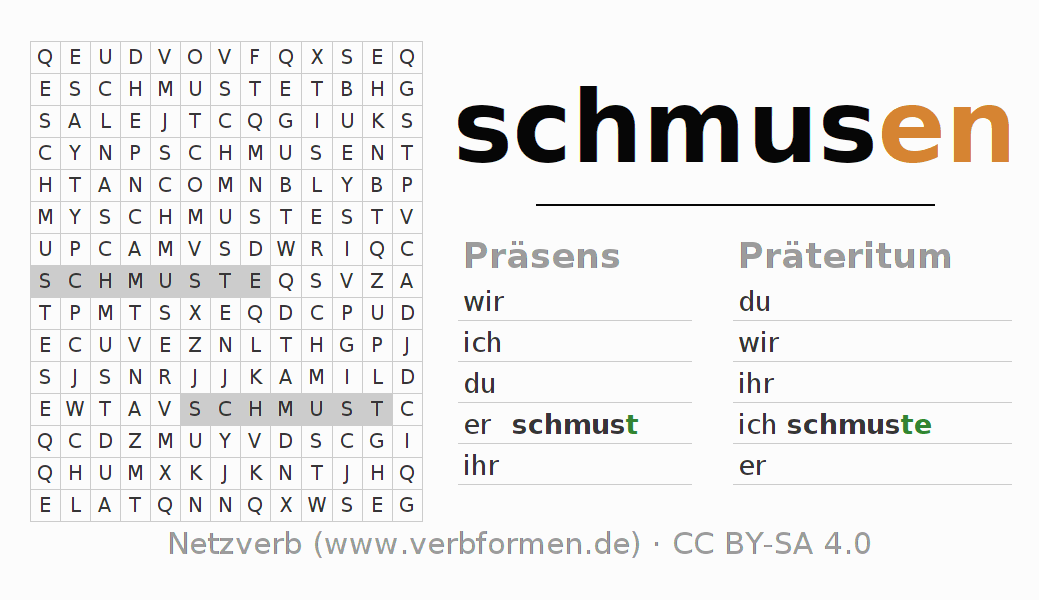 Lösung des Suchsels für die Verbkonjugation von schmusen