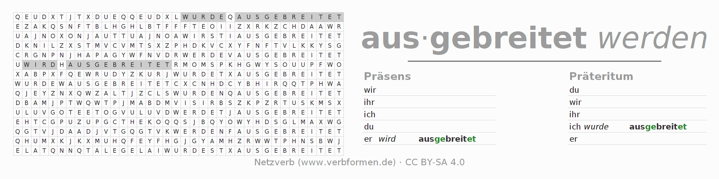 Wortsuchrätsel für die Konjugation des Verbs ausbreiten 〈Vorgangspassiv〉