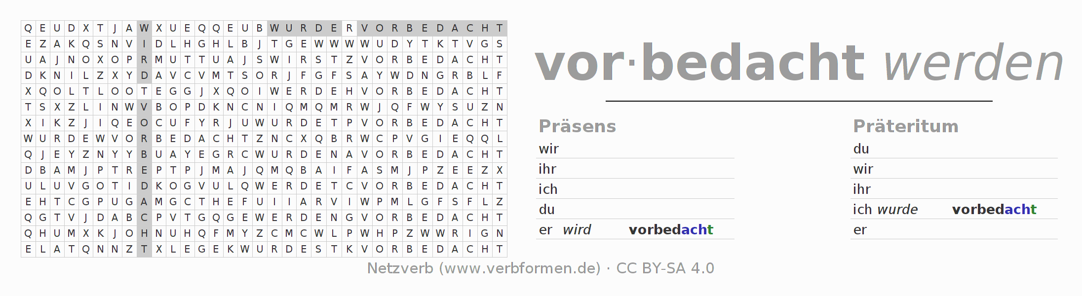 Lösung des Suchsels für die Verbkonjugation von vorbedenken