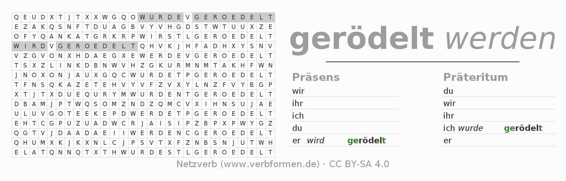 Lösung des Suchsels für die Verbkonjugation von rödeln