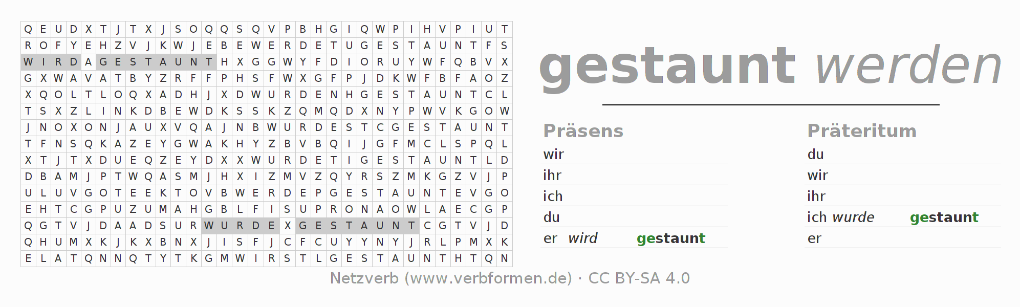 Lösung des Suchsels für die Verbkonjugation von staunen