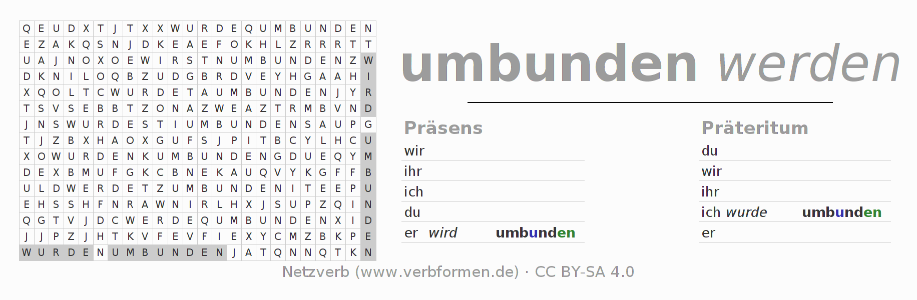 Lösung des Suchsels für die Verbkonjugation von umbinden